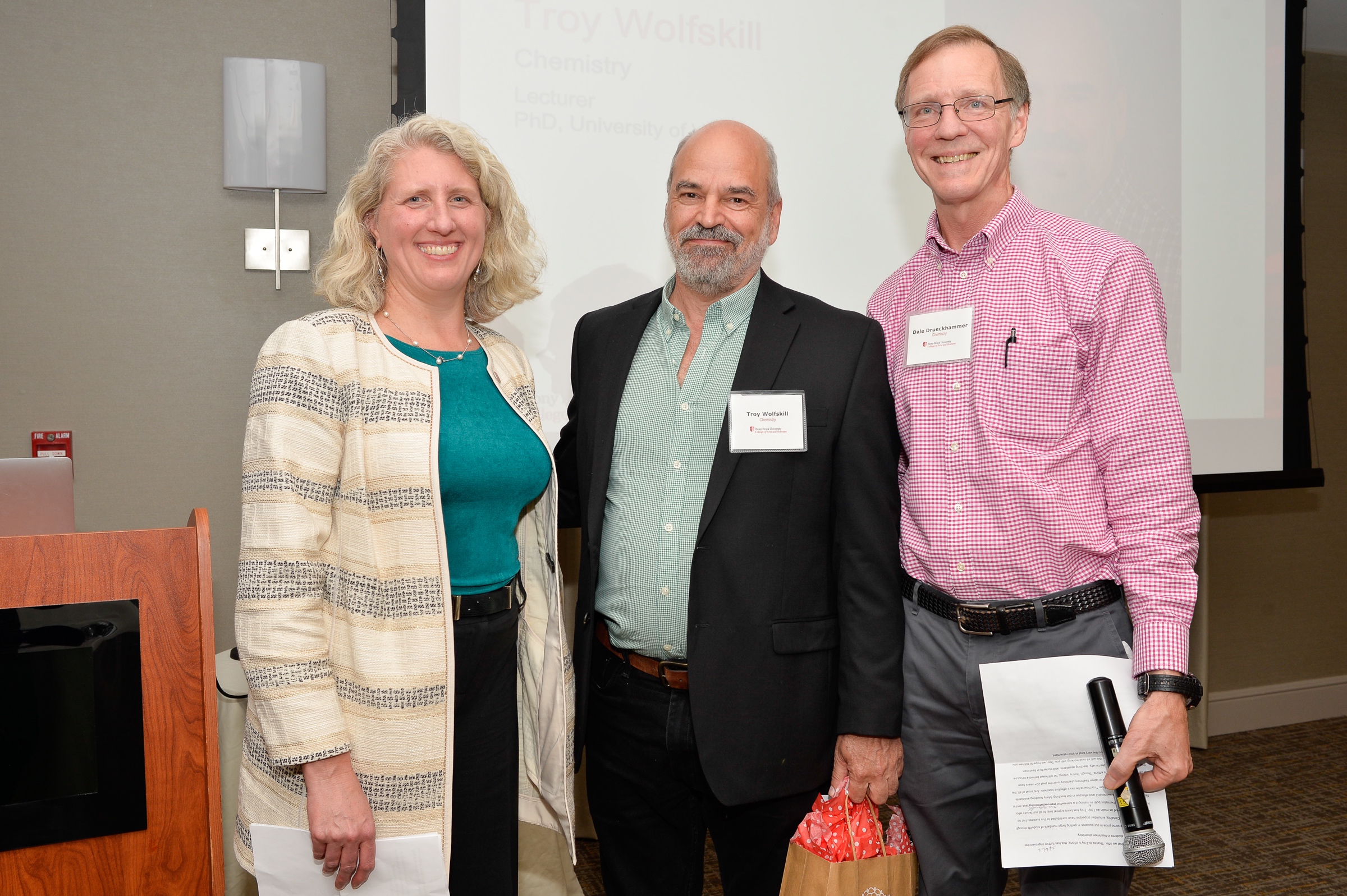 Interim Dean Nicole Sampson, Troy Wolfskill, and Dale Drueckhammer, Department of Chemistry