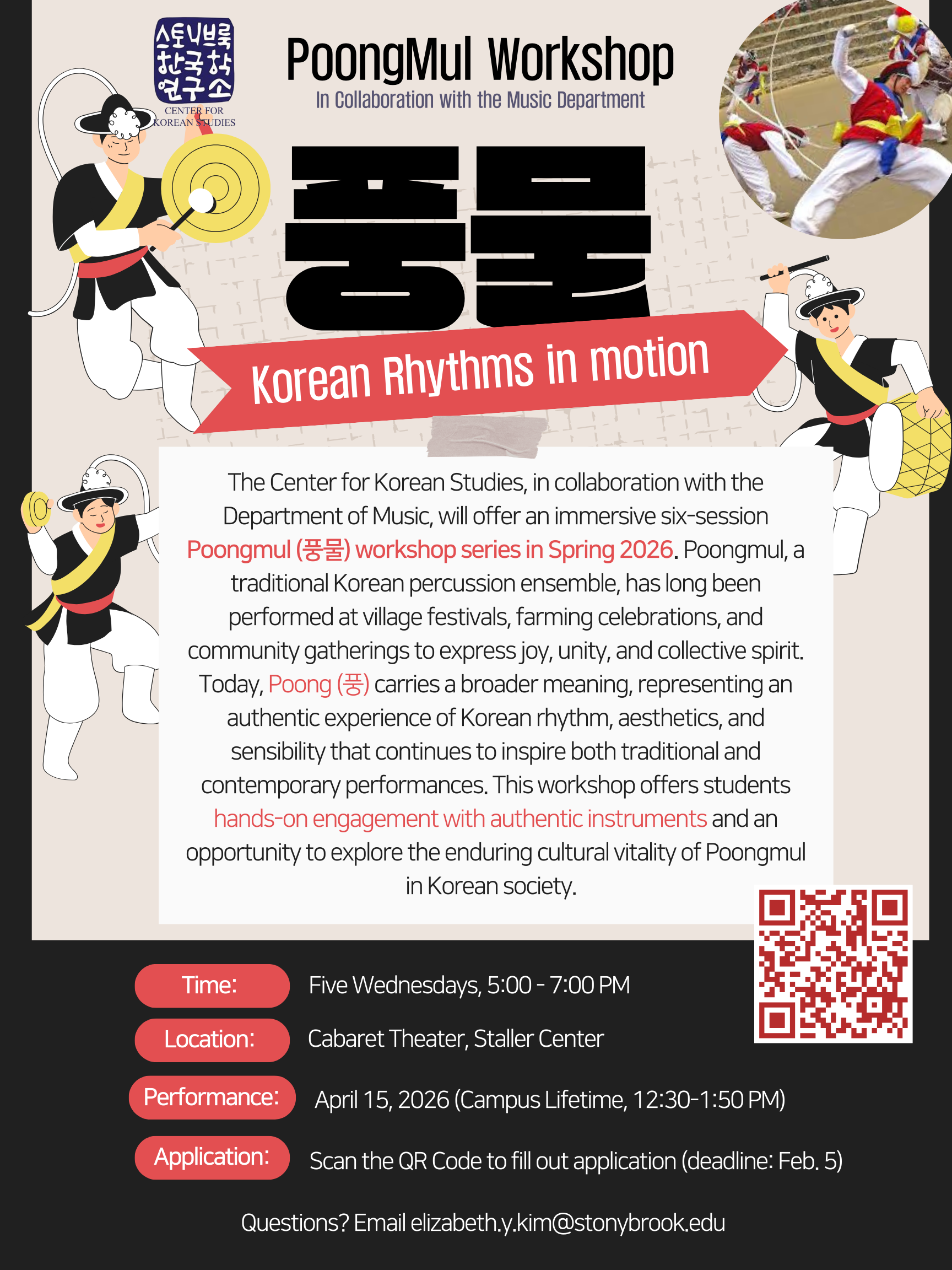 - Feb. 5 Deadline to apply for PoongMul Instrument Workshops