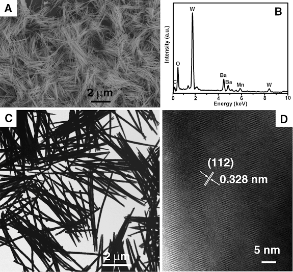 1. Single-crystalline BaWO4 and BaCrO4 nanorods (100 and 200 nm diameter-sized examples) were controllably prepared using a simple, room temperature approach, based on the use of porous alumina template membranes. Aligned BaWO4 and BaCrO4 nanorod arrays could be obtained by dissolving the template. Ref.: J. Am. Chem. Soc., v.126, 15245 (2004).